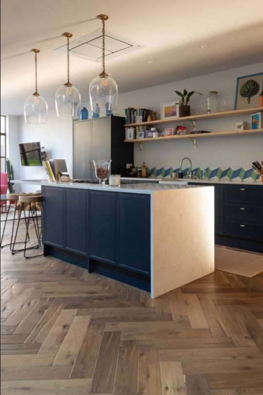 to our lighter, more chilled Heritage Herringbone oak floor! With the different grade of