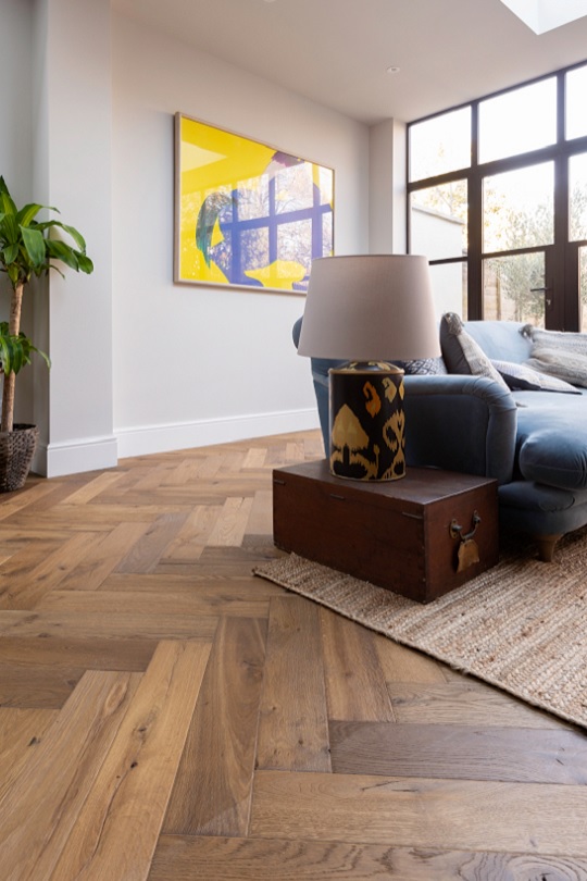floor. Our deep smoked Hampton Oak Colour no. 8 Herringbone aged oak flooring is like the brooding older brother