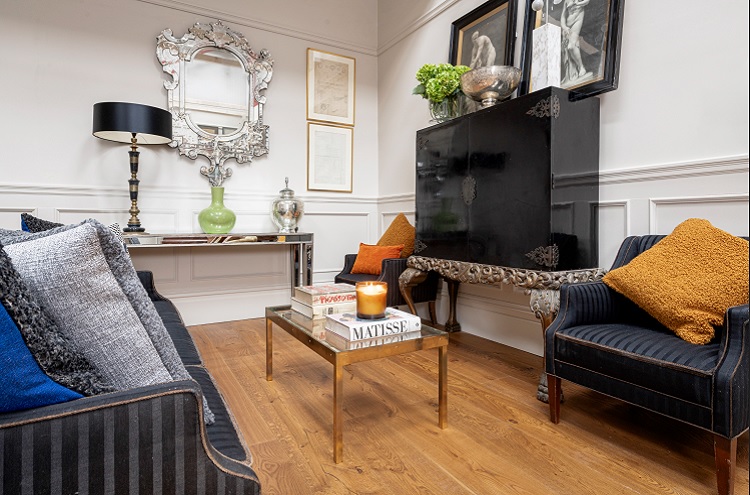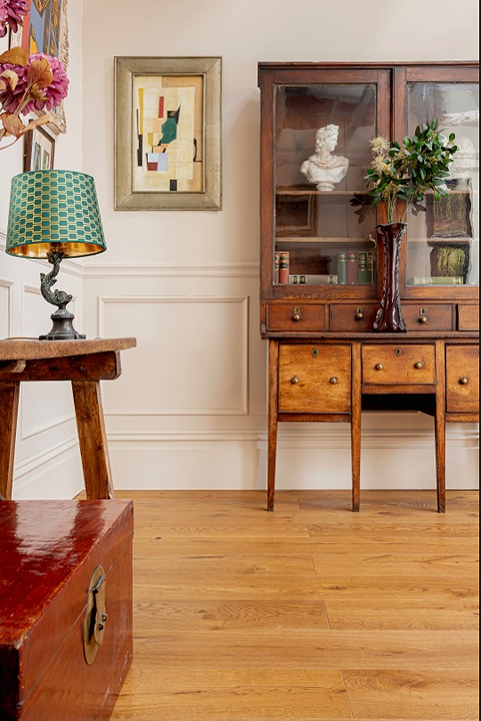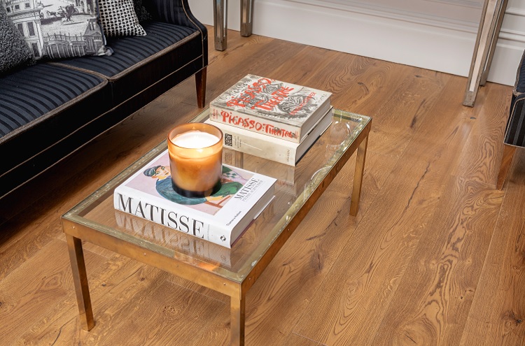 Sumptuous aged & smoked engineered oak flooring in a beautiful roasted latte colour. This stunning floor, with knots and brushed grain highlighting the natural characteristics of the oak, is at home in both classically styled interiors and more modern schemes. Our Old Coffee antiqued and aged oak flooring offers authenticity and originality. Beautifully finished, the textures and colours weave their way throughout each individual plank, seamlessly connecting to create a majestic flow across the floor. Old Coffee is a warm, dark honey-hued oak with a vintage look.