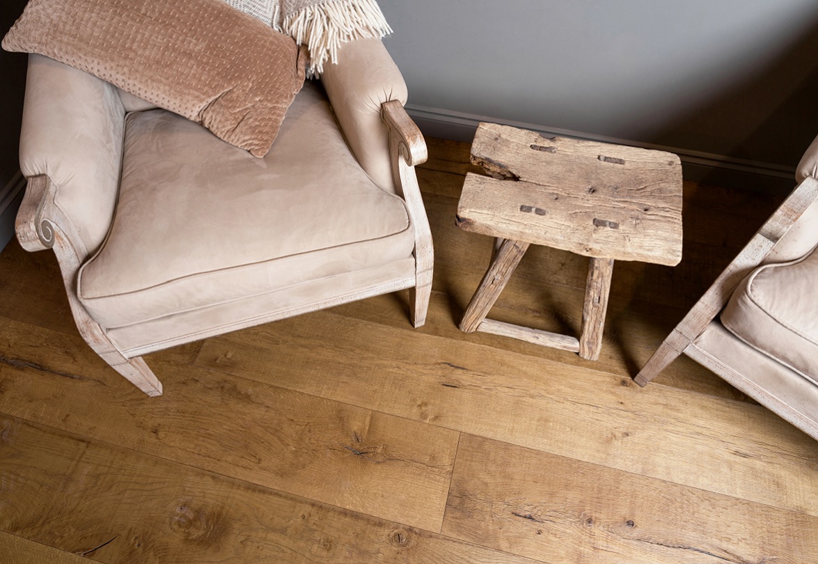Design tip: You cannot go wrong incorporating this oak floor into an analogous colour scheme. Plump for paint colours close to silver-grey that have a hint of taupe to harmonize effortlessly with the floor. Perennial Grey from Little Greene works perfectly or opt for Rubine Ashes is you prefer a paler shade.